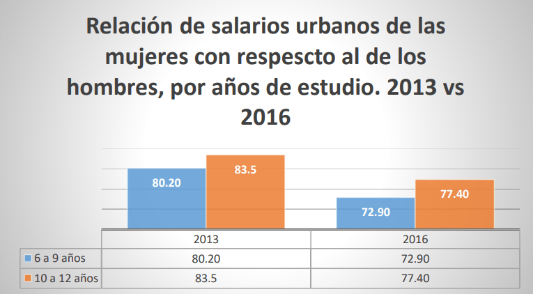 salario femenino es del 83.5% en 2013 mientras que en el 2016 es del 77.4% .